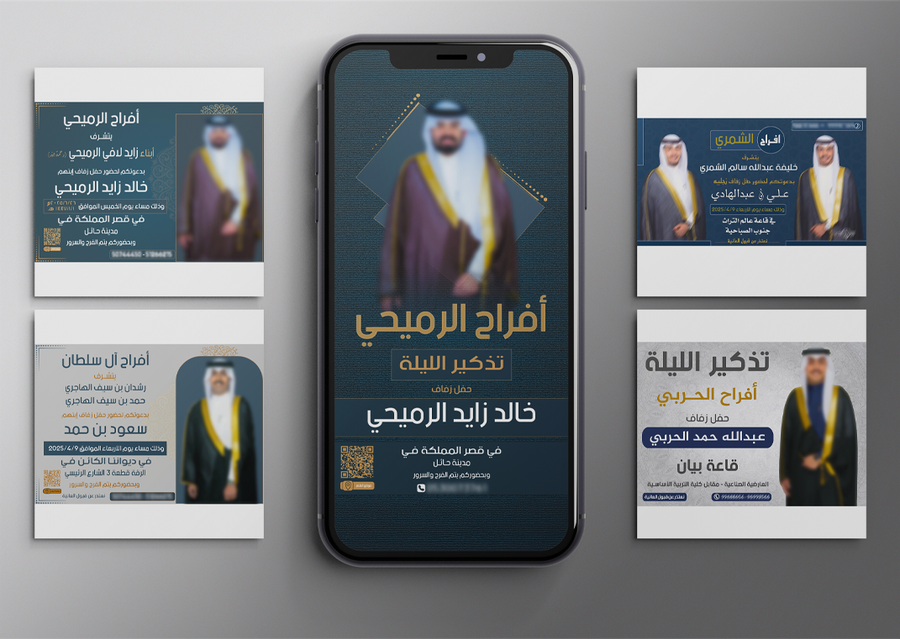 تصميم دعوة زواج بصورة واحدة أنيقة ومخصصة، جاهزة للمشاركة عبر واتساب أو وسائل التواصل الاجتماعي، مع إمكانية استخدامها للطباعة عند الحاجة، وبتنسيق بصري واضح يحافظ على الطابع الرسمي والخاص للمناسبة.