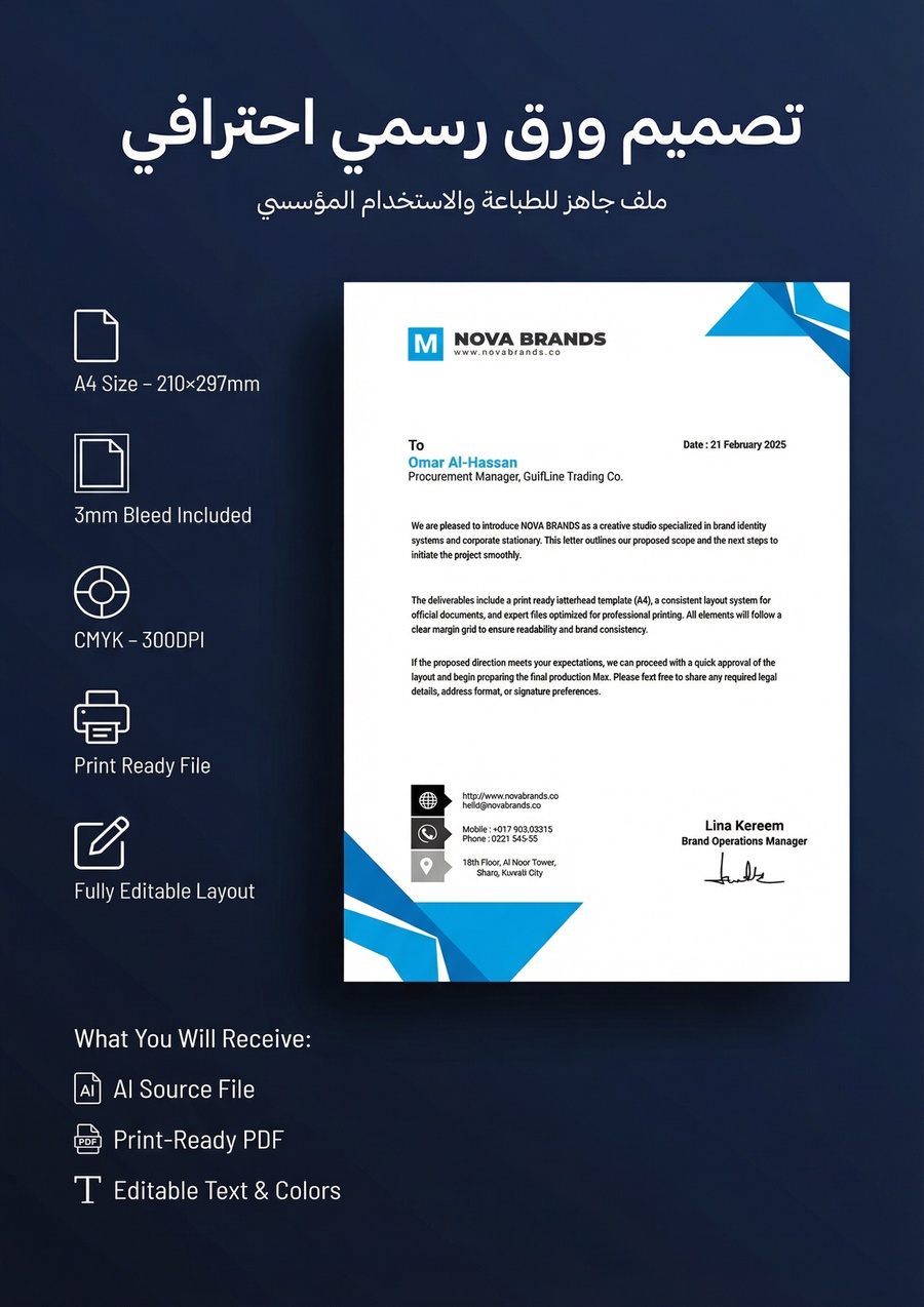 هذا المنتج مخصص للشركات والمؤسسات التي تحتاج مستندات رسمية تعكس احترافية علامتها التجارية في المراسلات والعقود والفواتير.