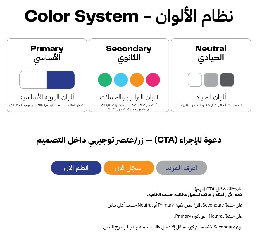 خدمة احترافية تشمل بناء النظام البصري، المستندات الرسمية، والحضور الرقمي لضمان اتساق علامتك في جميع نقاط التواصل. الهدف ليس عناصر منفصلة، بل هوية مترابطة تعمل كنظام واحد.